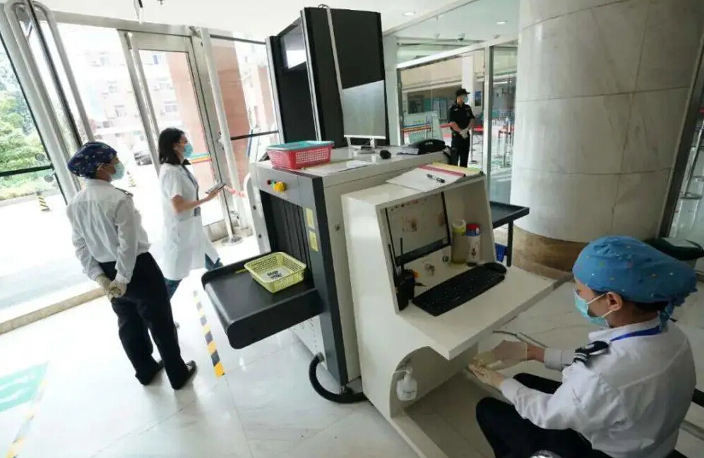 從今年1月下旬起,北京朝陽醫院就在全院5處出入口陸續安裝了金屬探測門,并于3月中旬先行先試。醫院還在門診樓出入口安裝了2臺智能安檢門,2臺X光安檢機,并配備了26部手持式金屬探測儀。