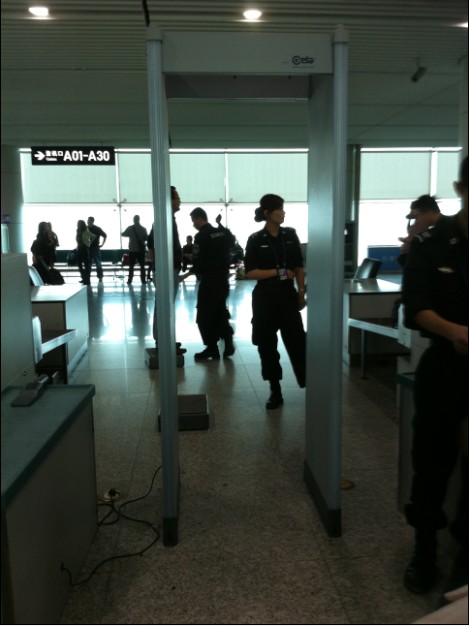 九寨溝黃龍機(jī)場(chǎng)一直都是采用HI-PE型意大利進(jìn)口機(jī)場(chǎng)抓用金屬安全門(mén)設(shè)備,同時(shí)還使用了防爆管對(duì)危爆品進(jìn)行安檢拍排爆。九寨溝黃龍機(jī)場(chǎng)位于四川阿壩州松潘縣境內(nèi)的川主寺鎮(zhèn)北約12公里處,是阿壩州的首個(gè)機(jī)場(chǎng),機(jī)場(chǎng)海拔3448米,距九寨溝88公里,距黃龍43公里,工程總投資為10億元人民幣,設(shè)計(jì)年吞吐量2010年將達(dá)到80萬(wàn)人次,機(jī)場(chǎng)跑道長(zhǎng)度3200米,寬為60米,機(jī)場(chǎng)可起降波音757、737-700、空客A319等大中型飛機(jī),與成都的空中距離約240公里,飛行時(shí)間約40分鐘。機(jī)場(chǎng)于2003年9月28日試通航,10月20日正式投入使用。九寨黃龍機(jī)場(chǎng)為中國(guó)國(guó)內(nèi)支線(xiàn)旅游機(jī)場(chǎng),位于四川阿壩州松潘縣境內(nèi)的川主寺鎮(zhèn)北約12公理處,所以又叫川主寺機(jī)場(chǎng),是阿壩州的首個(gè)機(jī)場(chǎng)。機(jī)場(chǎng)海拔標(biāo)高3448米,屬高原機(jī)場(chǎng),是中國(guó)三大高原機(jī)場(chǎng)之一。跑道參考坐標(biāo)為東經(jīng)103o40'59.3″,北緯32o51'24.6″,真方位16o—196o。工程總投資為10億元人民幣,按照國(guó)家計(jì)委批復(fù)意見(jiàn),川主寺紅星場(chǎng)址從飛行安全、投資、使用功能和生態(tài)環(huán)境角度綜合評(píng)估分析是該地區(qū)經(jīng)濟(jì)可行的場(chǎng)址。機(jī)場(chǎng)建設(shè)規(guī)模按滿(mǎn)足2010年旅客呑吐量80萬(wàn)人次進(jìn)行設(shè)計(jì),機(jī)場(chǎng)跑道長(zhǎng)度3440米,寬為60米,聯(lián)絡(luò)滑行道寬23米,站坪按停放4架飛機(jī)(37.4F和1D)設(shè)計(jì),航站樓按4000平方米設(shè)計(jì),與飛行區(qū)通過(guò)專(zhuān)用道連接,機(jī)場(chǎng)可起降波音757、737-700、A319等大中型飛機(jī),九黃機(jī)場(chǎng)于2003年9月28日正式投入使用。有國(guó)航、川航等航空公司的飛機(jī)投入運(yùn)行,旺季每天航班可達(dá)10個(gè)以上。以下是安檢門(mén)安裝現(xiàn)場(chǎng)圖: