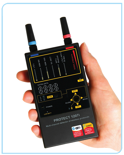 產品簡介:Protect 1207i是一款進口的針孔探測器,針孔檢測儀,無線信號檢測儀,防偷拍,防拍照,手持式無線信號檢測儀設備,體積小巧,探測距離遠,是公民隱私保護的利器